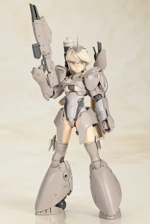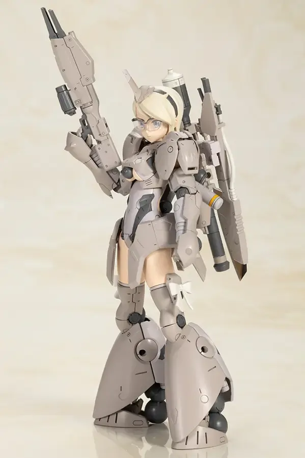 • Decals for her eyes and markings are provided, and the 3 mm ports distributed across her body are compatible with weapons and accessories from Kotobukiya’s M.S.G, Frame Arms, Megami Device, and other series.
