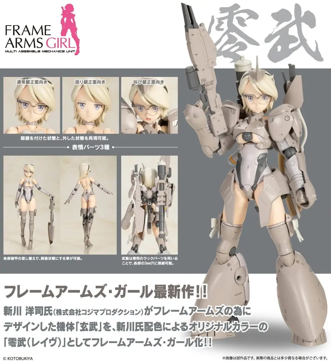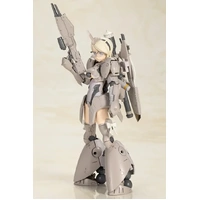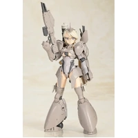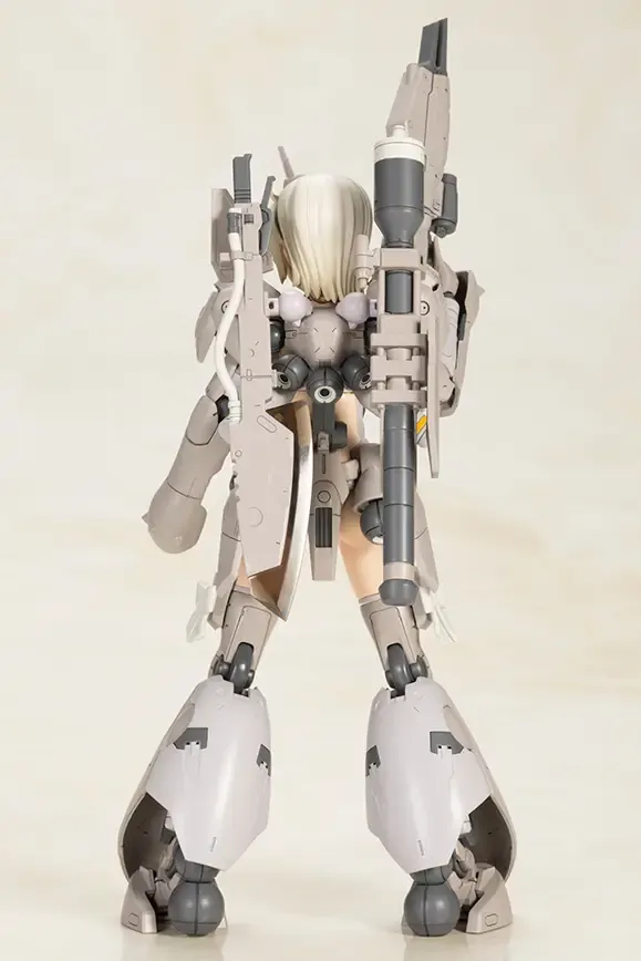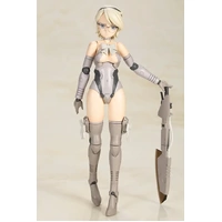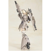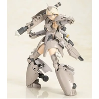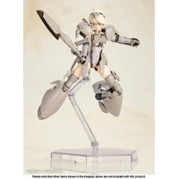 • Her newly designed weapons replicate those of the original Frame Arms Genbu and can be swapped interchangeably. These weapons attach to the 3 mm connection points across the figure using the included rack parts.