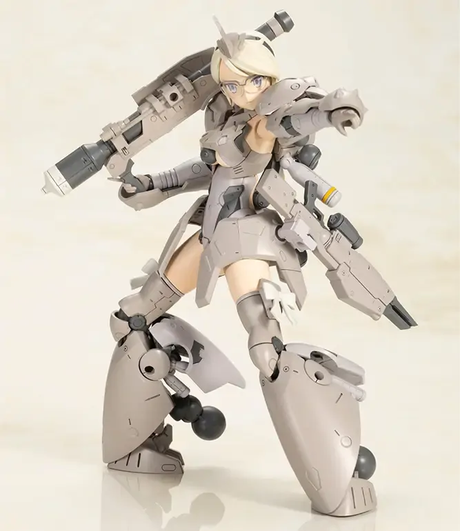 • This is an entirely new addition to the Frame Arms Girl lineup! Aside from the hairstyle and facial parts, the kit is fully compatible with other Frame Arms Girl model kits.