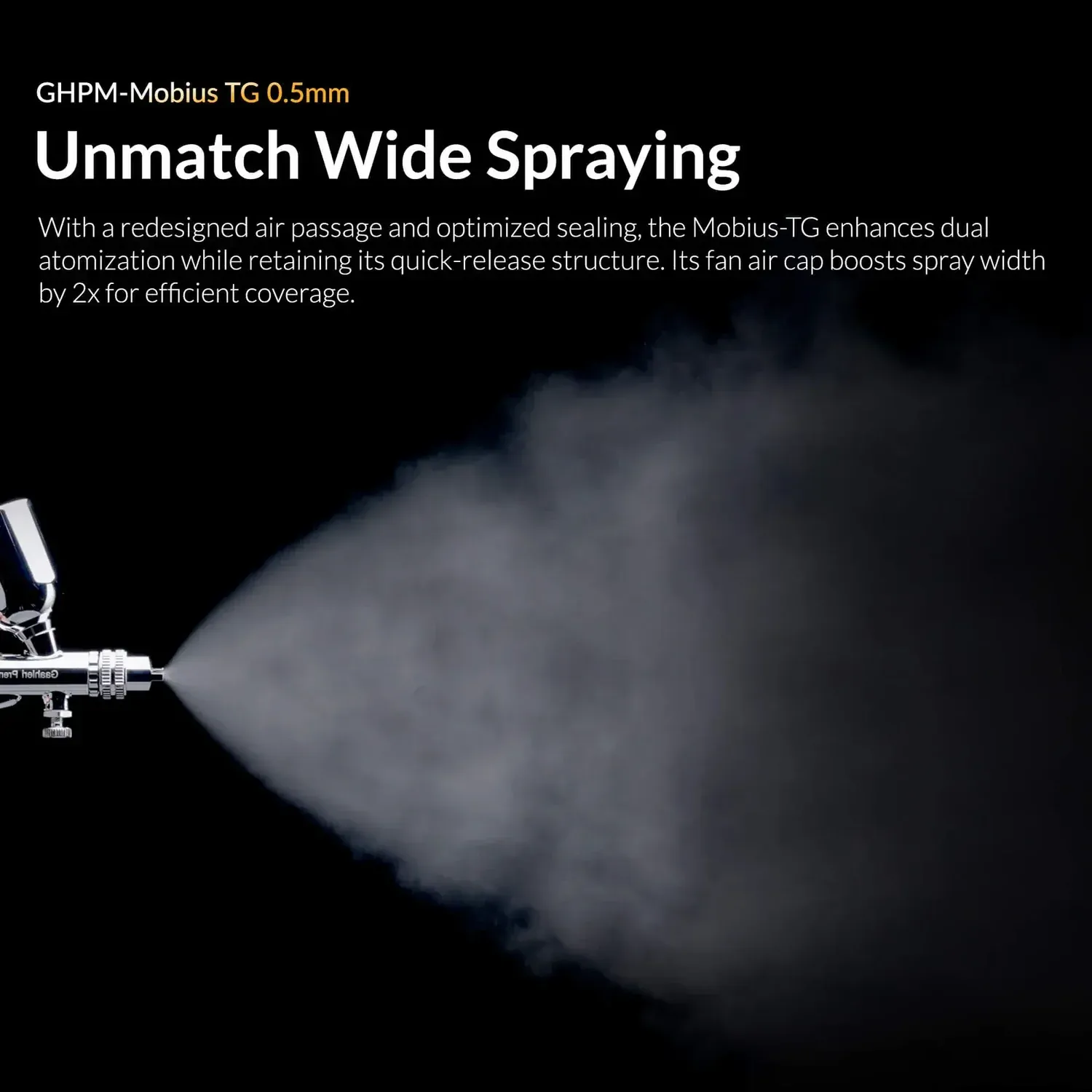 With its 0.5mm nozzle setup, the Mobius TG handles everything from fine detail to broader coverage with ease, making it a true all-rounder in your toolkit. Engineered for comfort and durability, it offers a balanced feel in hand so you can focus on creativity without fatigue slowing you down.