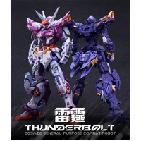 The IN ERA+ Thunderbolt (THB-02A RMD) is a striking 1/100 scale original mecha kit that delivers a powerful blend of sharp design, solid engineering, and premium presence on the shelf. Built as a cosmic general-purpose combat unit, Thunderbolt features a bold, heavily armed silhouette with layered armour and high mechanical detail throughout.Designed for builders who enjoy Master Grade–style complexity, this kit offers a satisfying build experience with excellent part separation, allowing for clean results straight out of the box or as a base for custom painting and detailing.