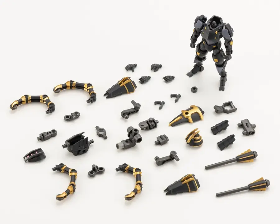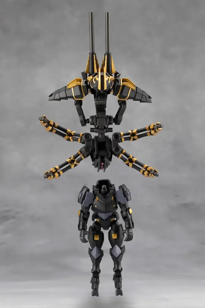 This heavily armed Governor merges the Ignite Spartan body with the armor and baton of an Armored Warrior. The four mechanical arms mounted on its back are fully articulated, enabling a wide range of dynamic and unconventional poses.The Armored Warrior Governor can also be separated into the Spider Alternative, with the baton doubling as a weapon for this form. The Spider Alternative consists of a head, torso, legs, and multiple joint components, all of which can be used for customization. Both the Spider Alternative and the Ignite Spartan are molded in two distinct colors.