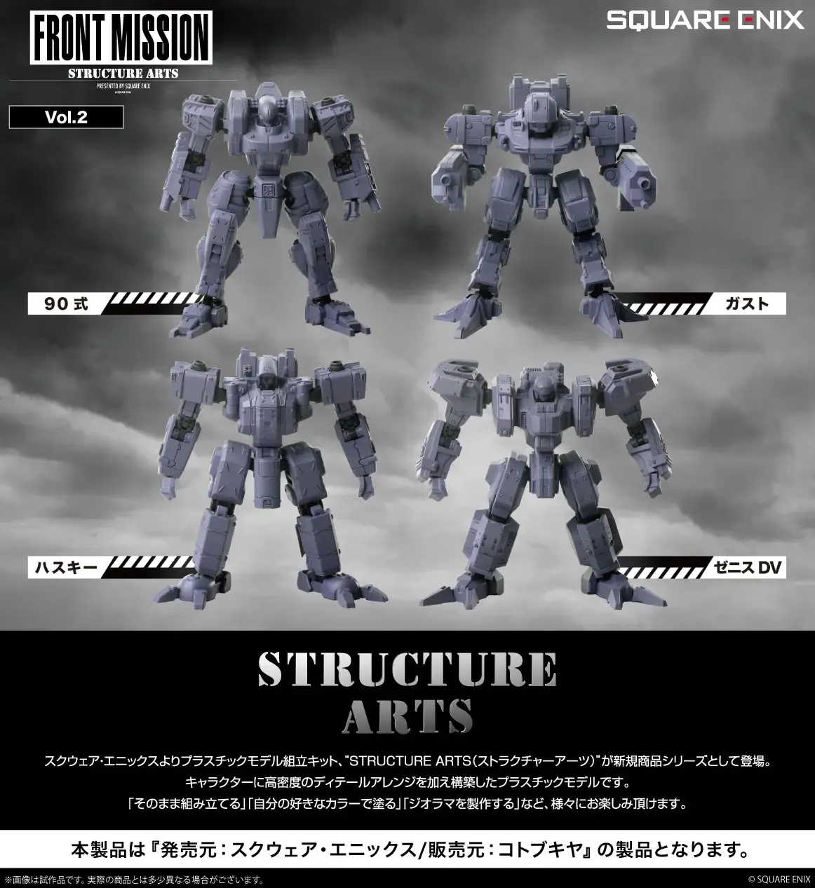 The "Front Mission Structure Arts" lineup is back with a new look! A series of the 1/72-scale units from "Front Mission Structure Arts" are back as "Additional Selection" units. Volume 2 includes the Type 90, Gust, Husky, and Zenith DV.