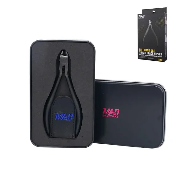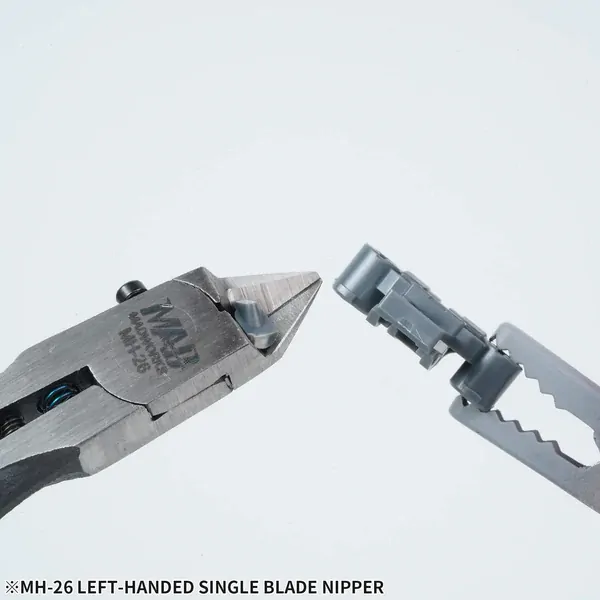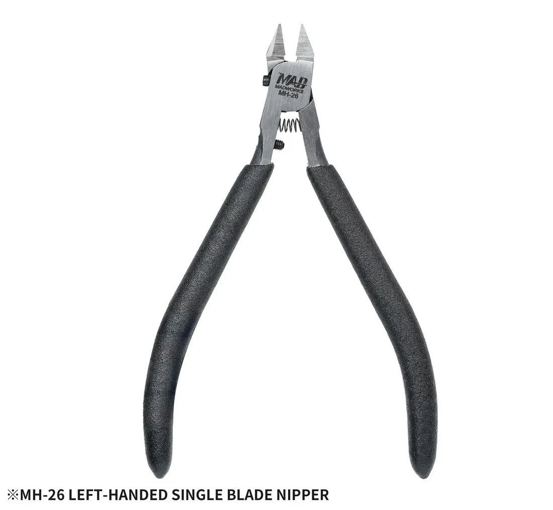 The Madworks MH-26 is a precision single-blade nipper designed for left handed modelers, providing smooth, clean cuts with minimal stress marks—ideal for scale models, Gundam kits, and other hobby projects.