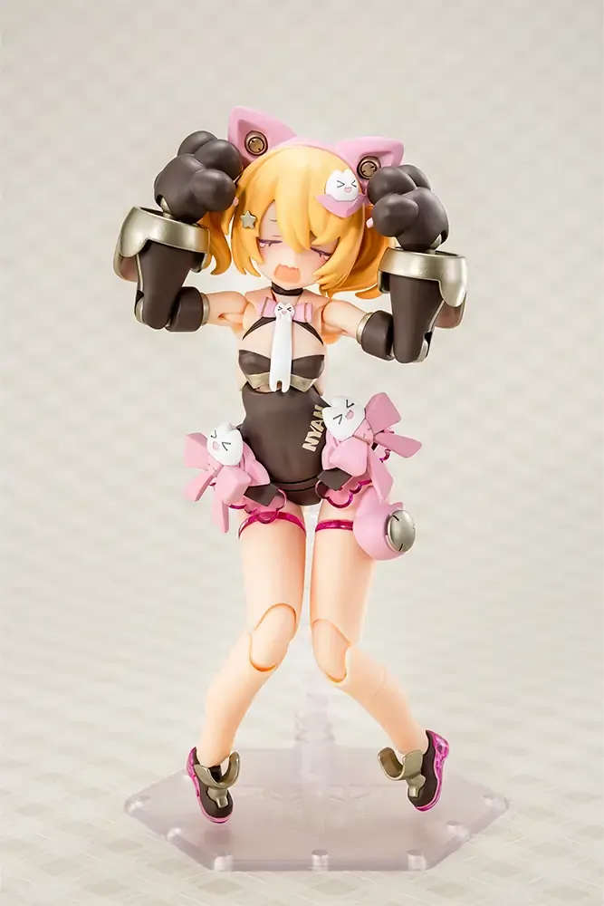 This version of PUNI MOFU Mao is a striking color variant featuring newly sculpted components. Her arms and legs are molded in Skin Color A, giving her a swimsuit-style appearance in Unarmed Mode. The kit includes three expressive new face plates illustrated by BLADE, plus interchangeable stomach pieces in both dark brown and skin tone options. Stickers for the stomach emblem and color accents are also included.