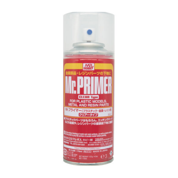 Perfect for use on plastic model kits, resin parts, and other hobby surfaces, Mr. Color Clear Type Primer GNB512 is a reliable choice for modellers who want the benefits of priming without obscuring surface detail or base colour.