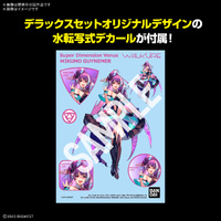 Bandai brings us a deluxe version of the VF-21S Siegfried piloted by Arad Molders from "Macross Delta," as part of their "HG (High Grade)" model-kit series! This model kit combines high quality and ease of assembly through three-stage interchangeable transformation and insert molding! This HG Macross Delta model features a three-stage interchangeable transformation system for easy conversion between Battroid, Gerwalk, and Fighter modes, maintaining accurate forms and smooth articulation. Color-coded areas are achieved via insert molding, and the container unit can be displayed in its stored state. The minigun pod has a movable axis, and the kit includes two knives, two pilot figures, a Mikumo Guynemer figure, and a multi-drone-style base. Interchangeable hands enable diverse poses, and the polarized canopy opens and closes. The deluxe edition adds an acrylic stand with Mikumo waterslide decals and a newly drawn illustration by character designer Chisato Mita, including a rear view on the stand.
