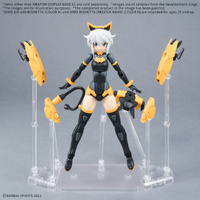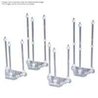 Bandai’s Weapon Display Base enhances model kit displays with clear plastic construction. The set includes four bases, 12 support posts, and joint parts compatible with Action Bases (sold separately).