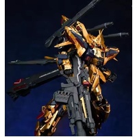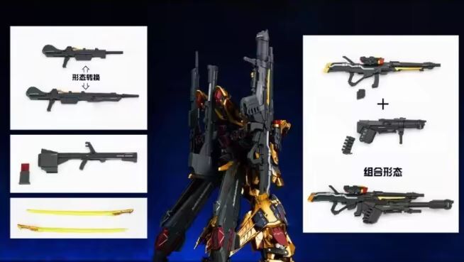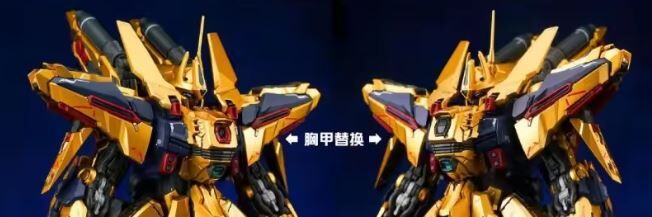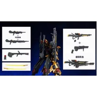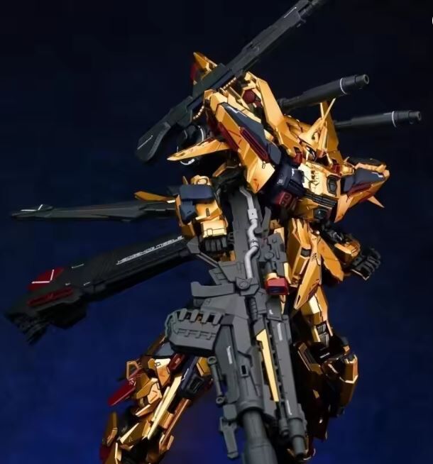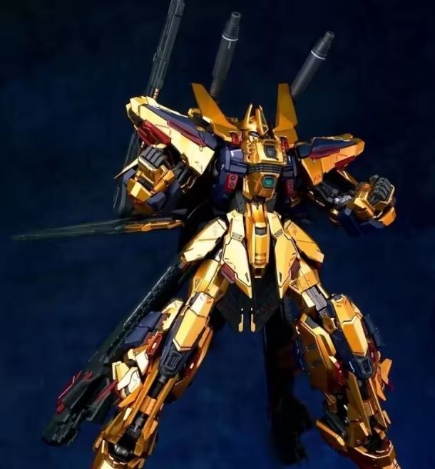 Finished in a striking metallic gold, this kit stands out straight out of the box and delivers strong shelf presence. It can be built in its base form or upgraded with additional armour and weapon systems for a more aggressive, fully equipped look.Includes a range of weapons such as a large cannon, rifle, and beam sabers, along with a display stand for dynamic posing.