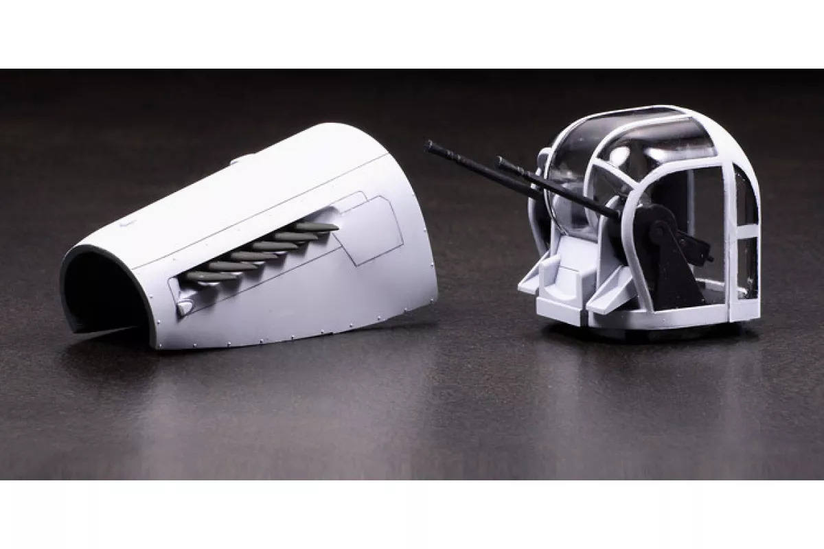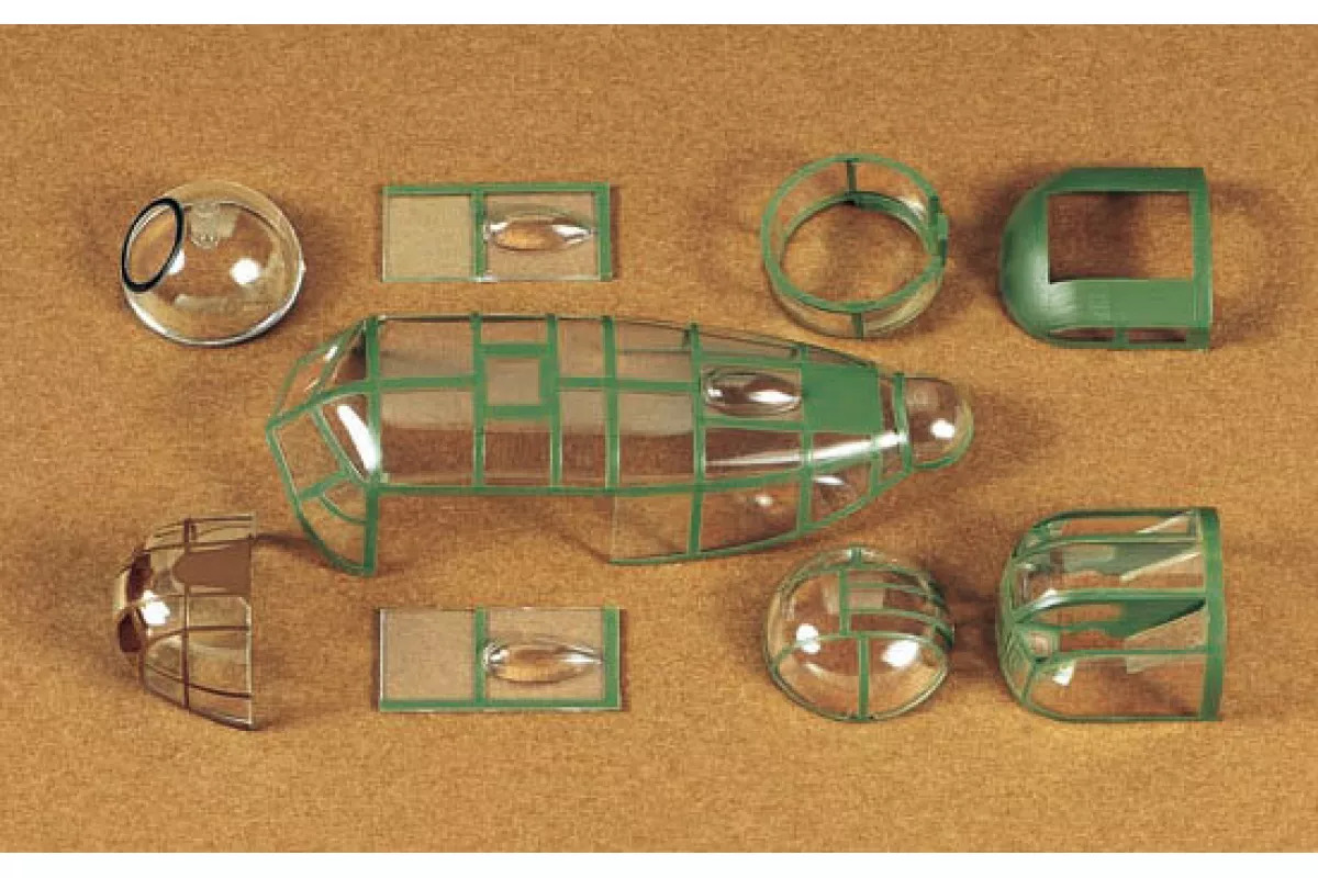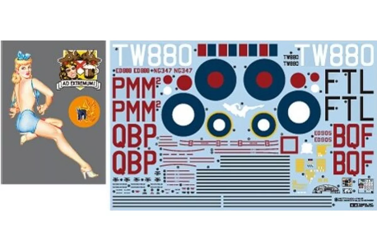 Length: 443mm, Wingspan: 648mm. This kit offers versatility with two types of nose windows, rear gun turret, and exhausts, allowing for depiction of both early- and late-production variants of the Mk.I and Mk.III. It includes both pre-painted and unpainted canopy parts, with meticulous interior details in the cockpit, gun turrets, and bomb bay. The nose, dorsal, and tail gun turrets are movable, and parts for two Merlin engines are provided, with detachable cowlings for display. Bomb bay doors can be assembled open or closed, and ordnance parts such as 200lb and 4,000lb bombs are included. Slick tires for the landing gear feature a realistic weighted effect. Five figures, representing the pilot, radio operator, bombardier, gunner, and ground crew, are included. The kit also comes with four marking options for added customization.