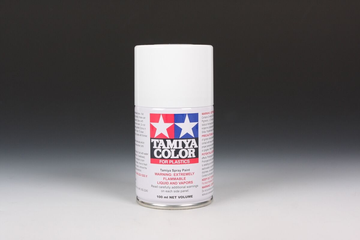 Tamiya Spray color is an aerosol spray version of the well known Tamiya range of laquer paints. For the best results, it is recommended to gently warm the spray can for five minutes in a bowl of warm water. This will reduce the viscosity of the paint in the spray can. Shake the spray can well for approximately three minutes. You will hear the sound made by the metal ball placed insidee the can to encourage thorough mixing. Spray in even straight strokes from side to side. When spraying, hold the can upside down, and spray until no paint emerges, to clean the fine paint nozzle.
