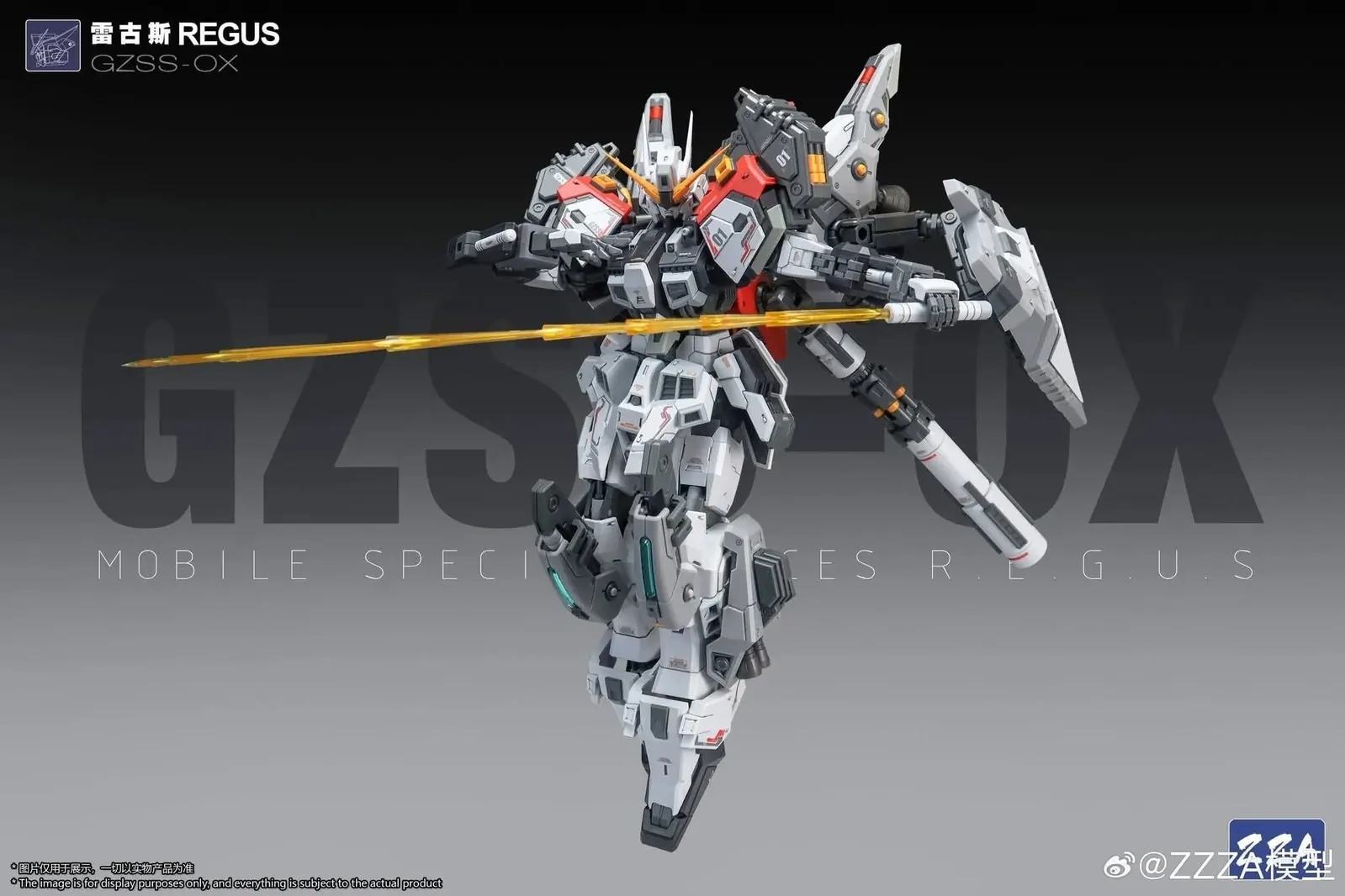 Equipped with a range of weapons and optional parts, the GZSS-0X 001 REGUS offers excellent display versatility—whether in action poses or a clean, standing showcase. Its detailed surface design also makes it an ideal canvas for custom painting and weathering.
